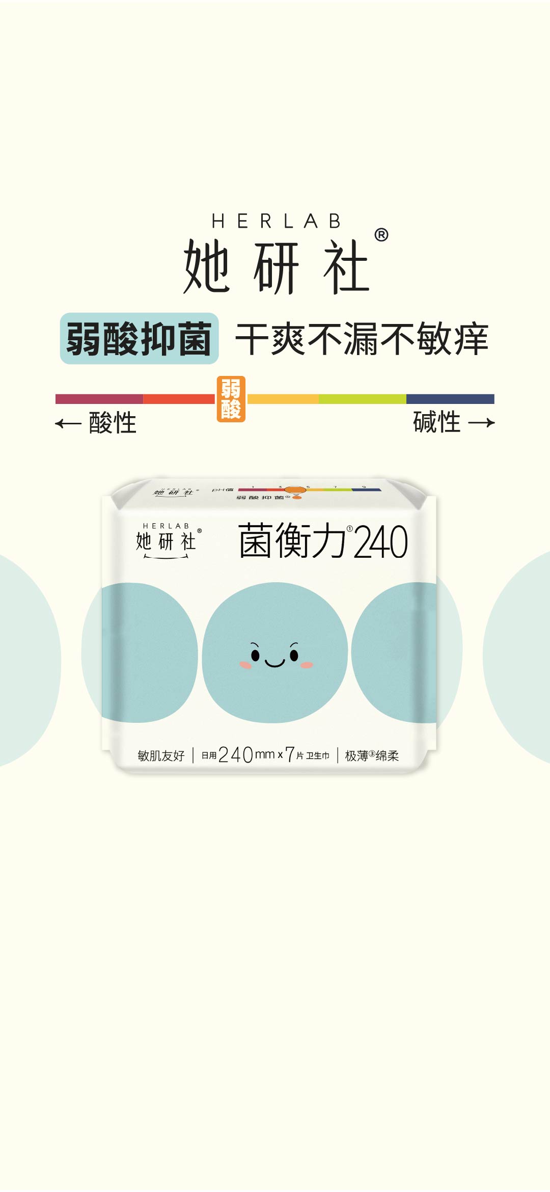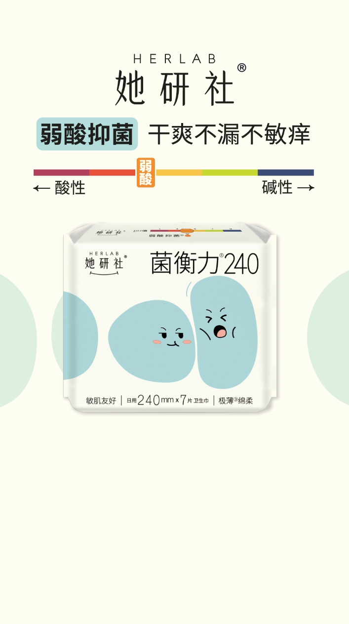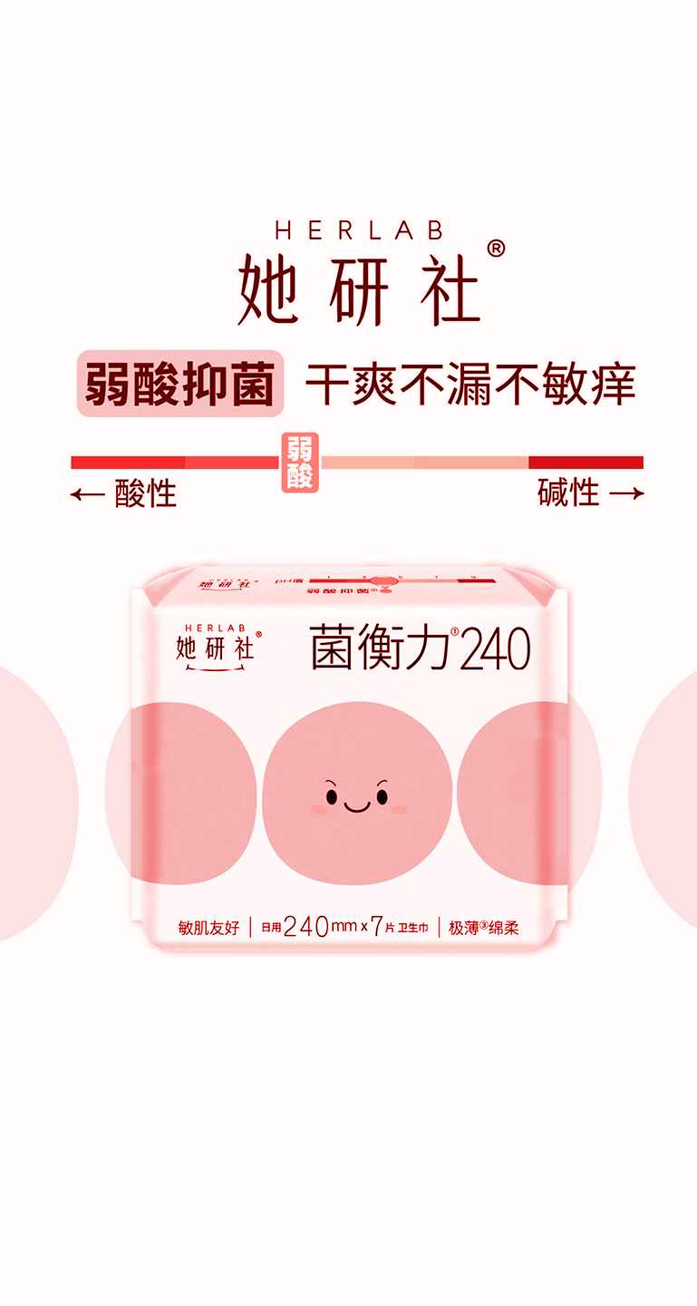 她研社(HERLAB)深耕女性护理领域,精准洞察现代女性对护理产品 “安全、舒适、高效” 的深层需求,以科学配方和创新设计为支撑,致力于打破传统护理产品的痛点。品牌核心价值围绕 “温和护养、实力防护” 展开 ——“弱酸抑菌” 贴合女性生理环境,避免敏痒困扰;“干爽不漏”“吸到底” 则保障使用场景的安心与舒适,让女性在日常中无需顾虑,自在展现状态。