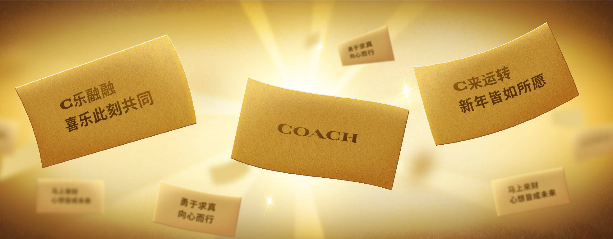As the Milky Way hangs low and the night is as dark as ink, a wisp of shimmering gold quietly awakens from the depths of space. The large-screen VJ we created for the COACH Taiyuan concert was intended to be more than just a "background"; it aimed to be an extension of the brand's emotions. How could we visually convey New Year's blessings like "C brings good fortune" and "C brings joy" in a way that is both ceremonial and unconventional? Ultimately, we chose to place the "C" within the vast galaxy—using the deep sky as a backdrop and shimmering gold as a brush, allowing the brand symbol to rise slowly amidst the music like a lit-up lucky star, gently yet firmly conveying COACH's modern warmth.