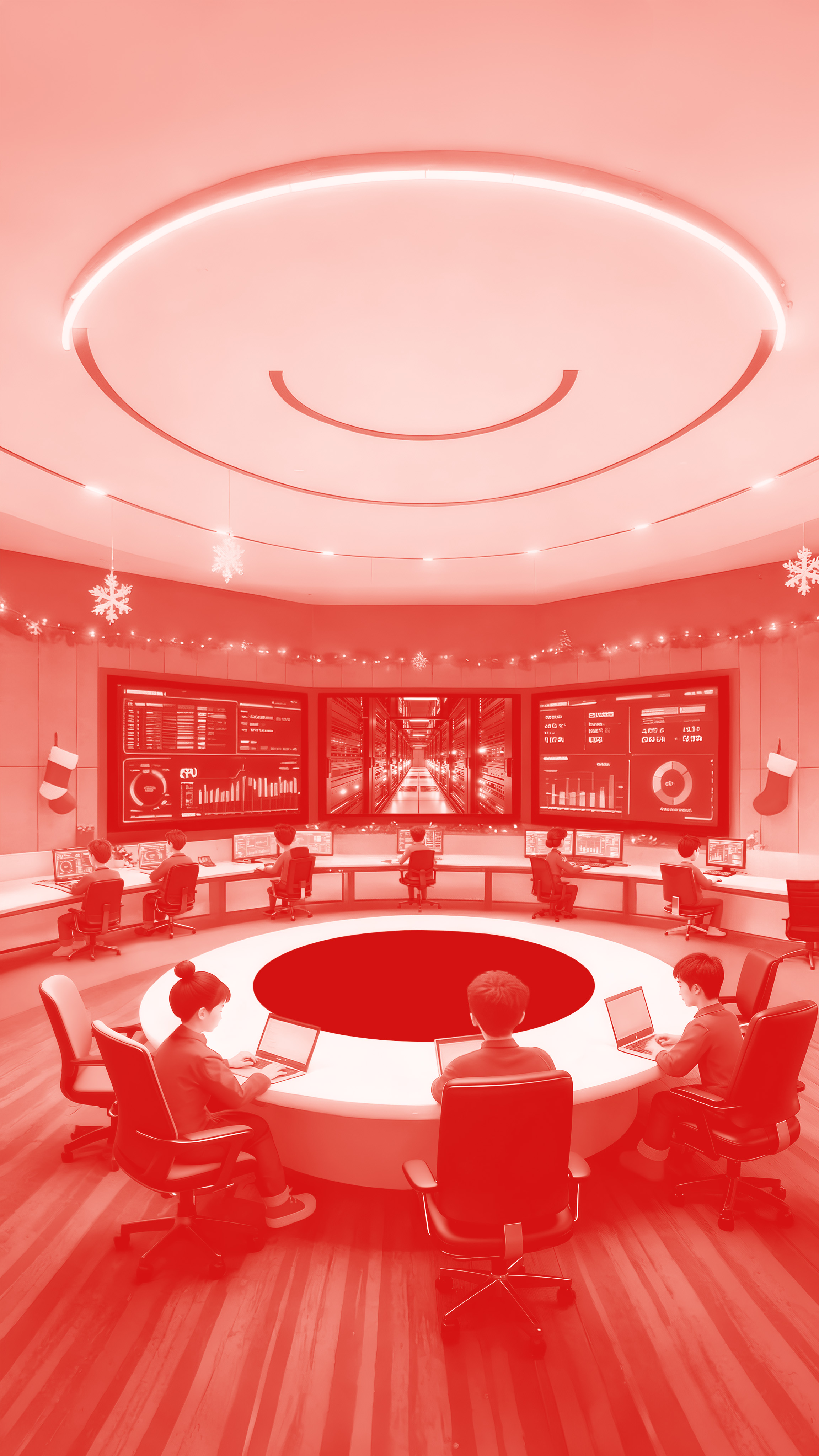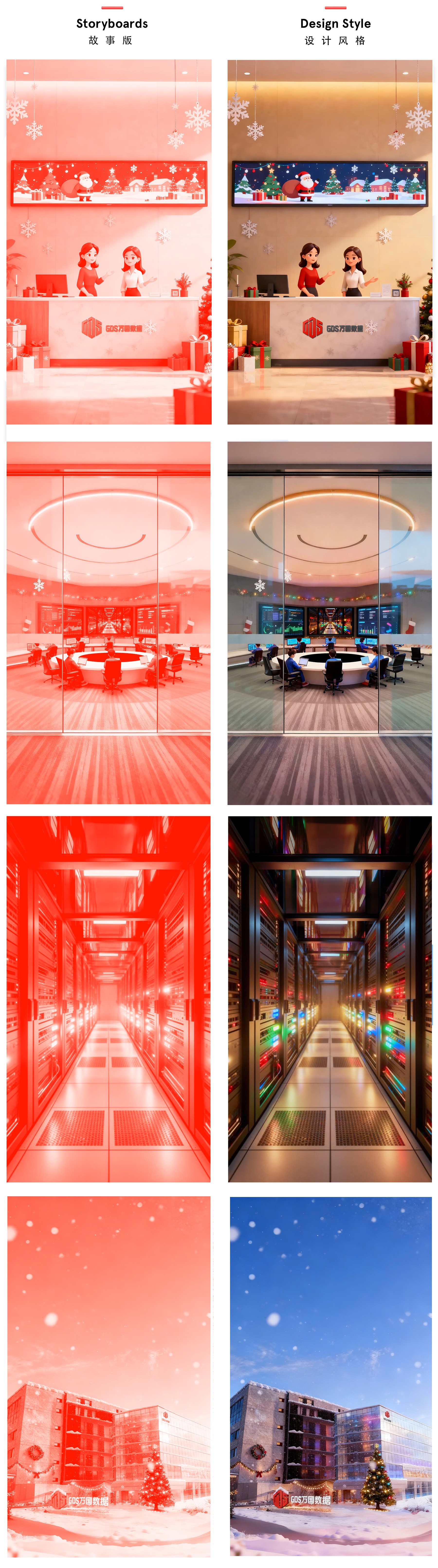 此次我们让“空间”成为主角——从大楼外景到前台、办公区,再到监控中心与机房,最终回归楼宇全景,以一场温暖闭环,诉说万国数据在节日里不变的守护与陪伴。