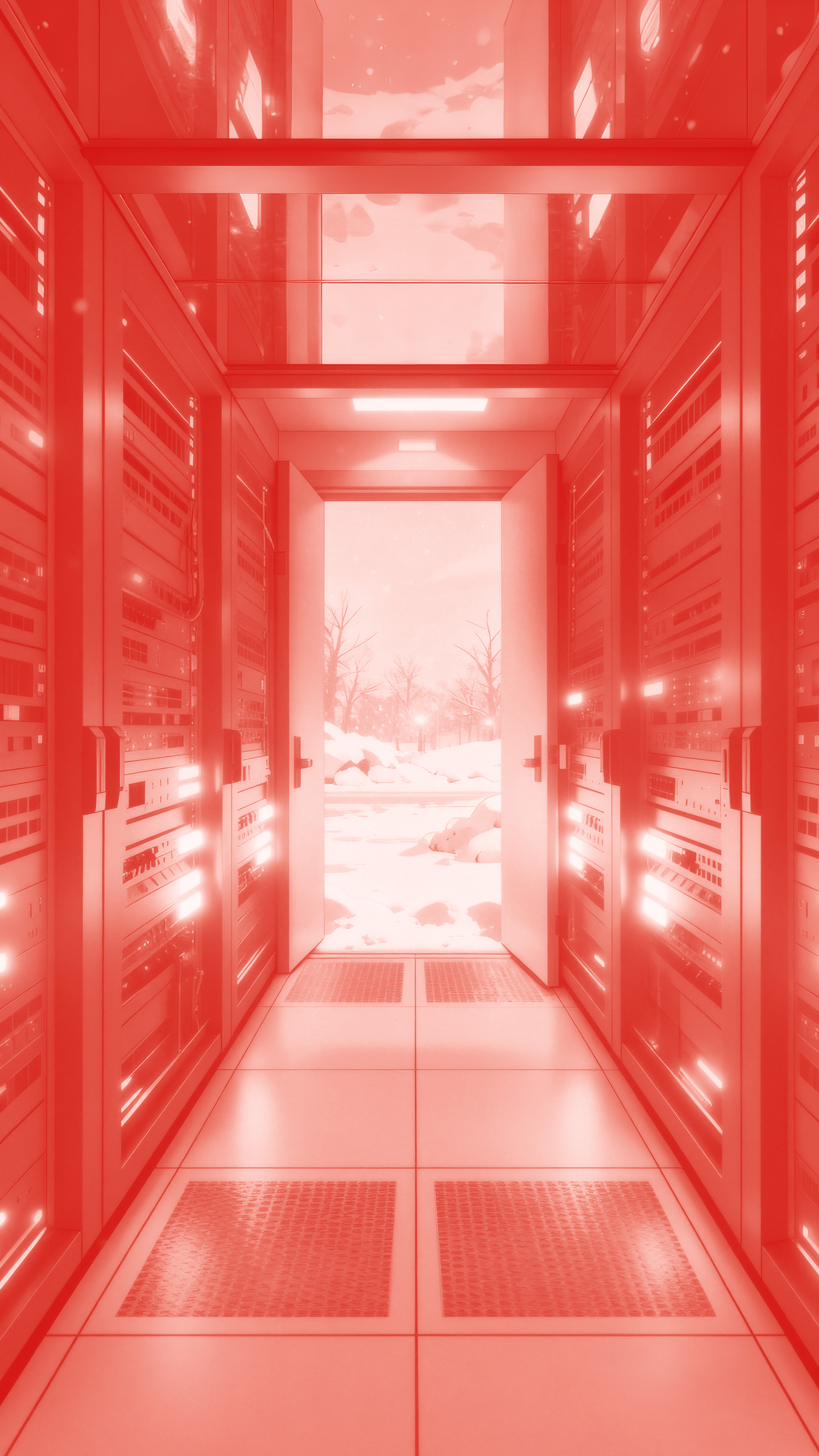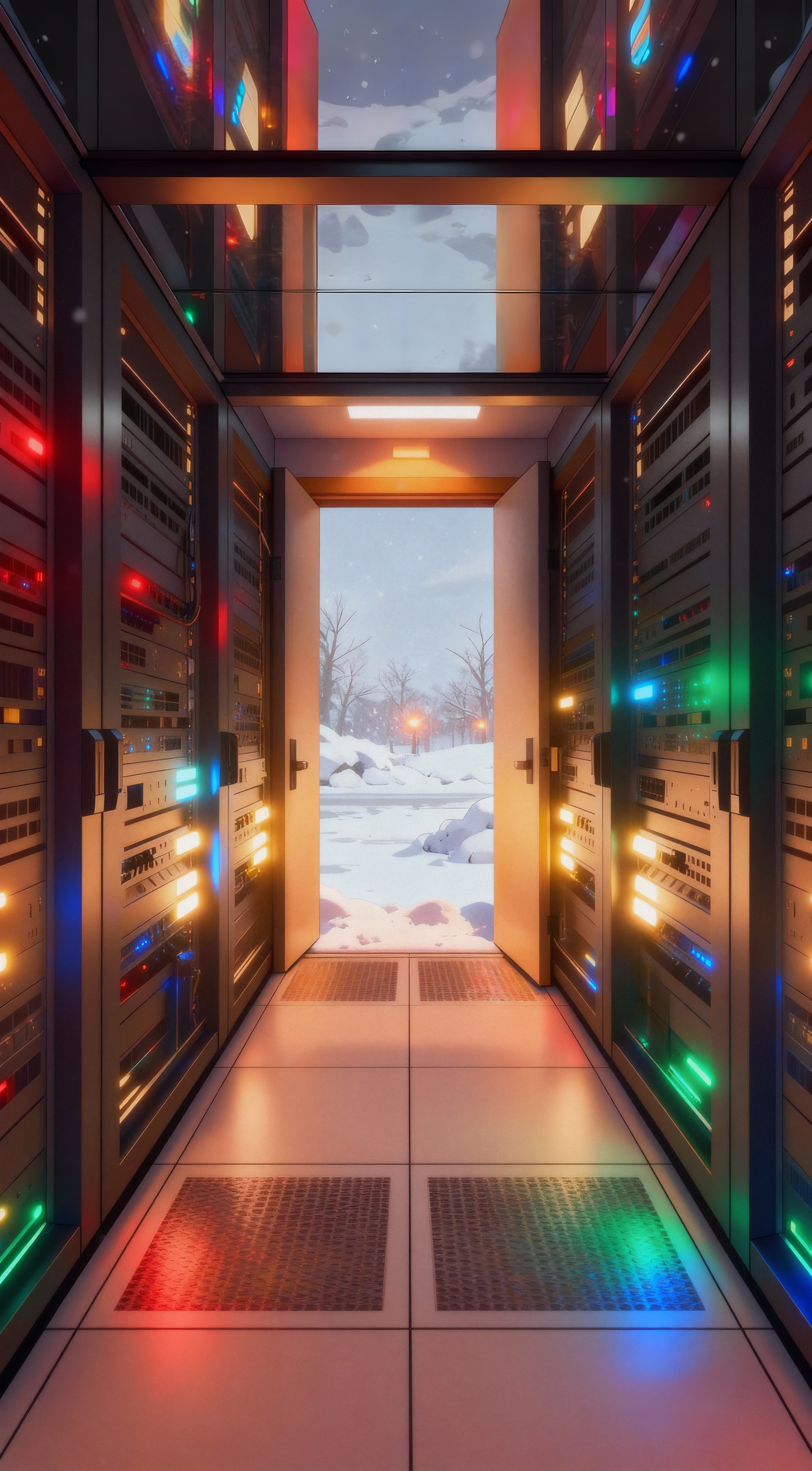 Compositionally, a symmetrical layout emphasizes the sense of order in the technological space, while warm-toned holiday decorations accentu environment to create a gentle visual focal point; the final shot slowly pulls back, concluding the film amidst sunlight and gently falling snowflakes, evoking a sense of tranquility and hope.