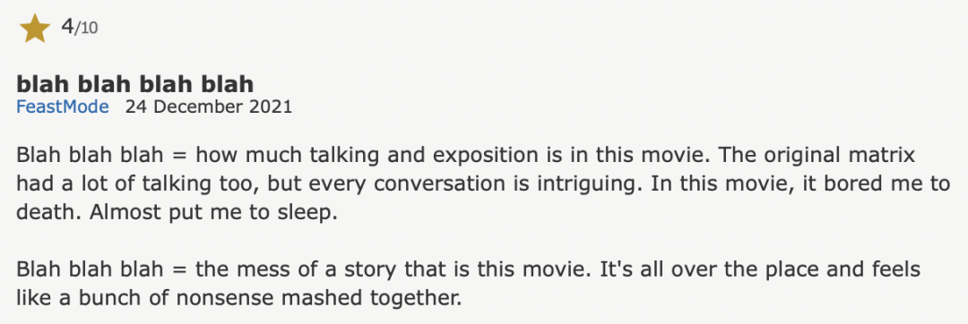 准确地说,是吐槽《黑客帝国》的出品方华纳。