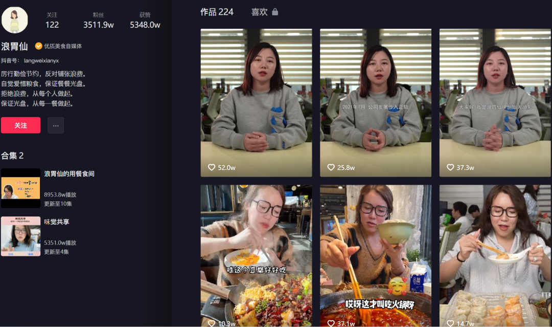 3月6日,已经停更一月以上的抖音美食大号“浪胃仙”一连发布了三条视频,只是,这次出镜的并非“浪胃仙”本人,而是自称“浪胃仙”IP创始人的游絮。