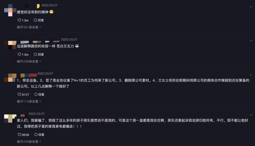 与此前MCN达人之争,网民必站达人的情绪相反的是,这一次,大多数人都对MCN抱有更大的同情,微博评论区下,不乏有“白眼狼”“过河拆桥”“忘恩负义”等词语直指“浪胃仙”本人。