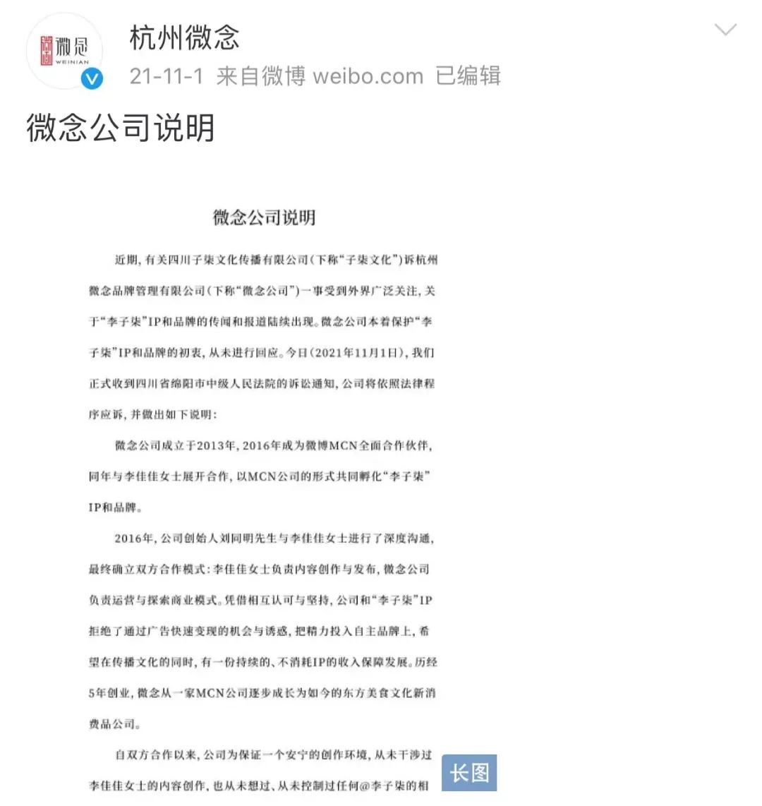 “资本的好手段”后,李子柒选择停更以示抗议,并和其背后的微念对簿公堂。从去年7月至今,李子柒仍未更新视频,官司也未有进一步的结果。这不仅对李子柒本人的商业价值有伤害,更对靠“李子柒”吃饭的杭州微念造成巨大影响。