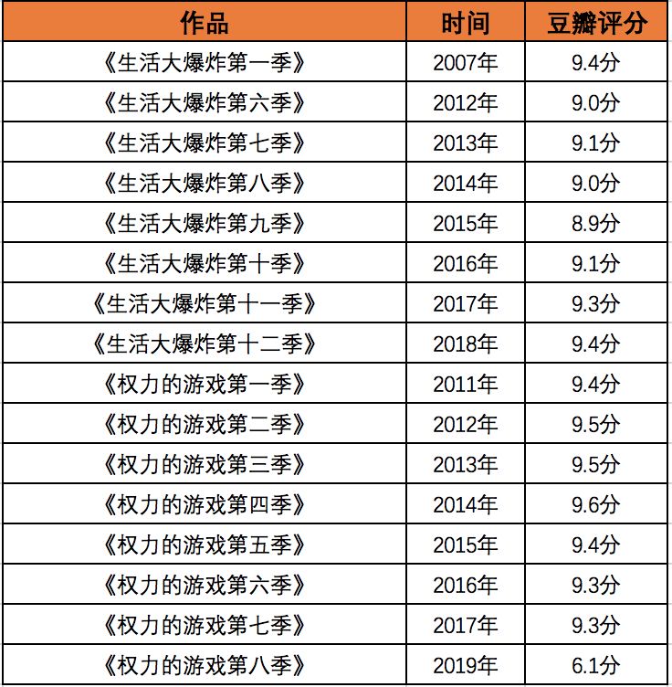 在作品获得一定影响力之后,拍摄续集成为延续并强化IP,实现品牌效应的最佳途径,既为影视市场带来更多活力,又能实现自身内容的可持续性传播。因此但凡爆款剧,大多有续集。有些是根据IP改编提前策划,有些则是因为第一部火爆,重新启动续集项目。2015年,改编自尼罗小说的《无心法师》可谓是一匹“黑马”, 虽然出身小众IP,但凭借高品质、“非五毛特效”获网友认可,加上“自来水”的推波助澜,《无心法师》被推上了网络自制剧的潮头。网友们评价也很高,更是吊打当时大投资大IP的《盗墓笔记》,“演员演技特别自然,特技场景都良心!《盗墓笔记》特效五毛的话,无心有五块吧!”因此,两年之后,改编自小说第二、三部的故事,把降妖除魔与抗日背景下的国仇家恨联系起来的《无心法师2》上线,原本是想再续爆款,然而最终以6.1的评分收官。对于国产剧来说,不仅是《无心法师》系列,大多国产续集大多表现都不让人满意,摆脱不了“一鼓作气,再而衰,三而竭”的“魔咒”。我们总结了最近今年系列作品,单纯从评分来看,几乎每一部续作评分都呈现下降的趋势,并且续作一般都在3季以内。甚至《爱情公寓》系列、《还珠格格》系列、《家有儿女》系列等老牌电视剧均出现续集口碑下滑的情况。即使像《大军师司马懿》《琅琊榜》第二季口碑不落,但续集的播放量往往又大幅下滑。《军师联盟》以70.82亿的播放量、8.1分的评分成为2017年的爆款网剧,续集《虎啸龙吟》在口碑上依旧延续前作,评分高达8.4分,但该剧的播放量仅有48.55亿,和前作相差超过20亿。同样情况再看美剧,动辄七八季,且每一季都在平均水平以上。就拿《生活大爆炸》以及《权力的游戏》为例,基本都在9.0分左右上下有轻微浮动,不仅总体质量很高,且浮动很小(除《权力的游戏8》烂尾导致评分降低之外)。此外,观看人数也呈现呈递增趋势,《生活大爆炸》第一季的收视人数仅840万,第十季达到1899万人。其中,该系列的最高收视人数达到了2040万。由此可见,与国外的续集作品相比,国内无论是IP改编,还是原创作品的续集总体都比较薄弱。