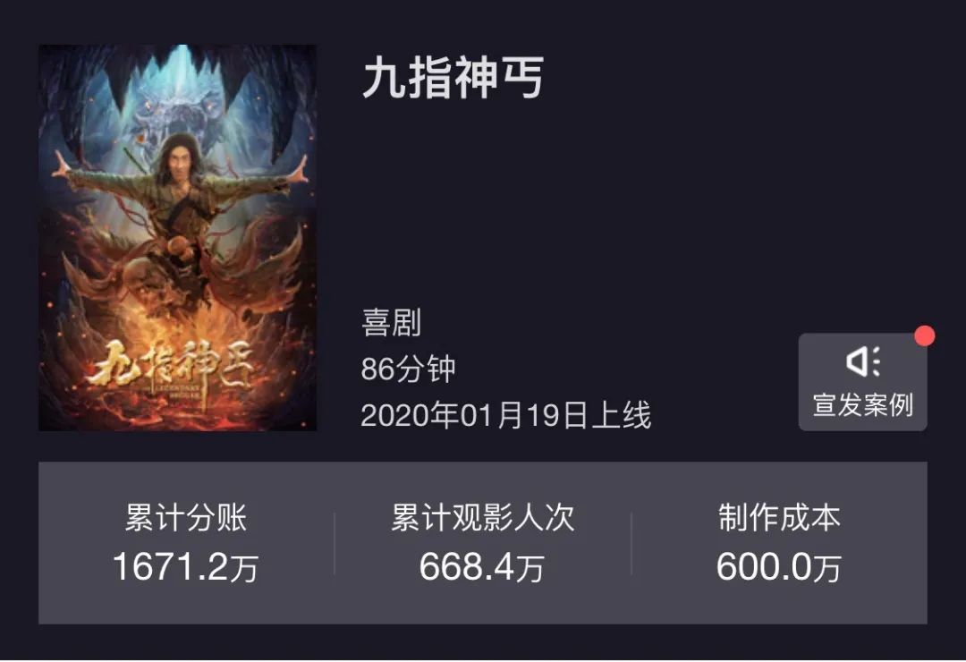 600万成本的《九指神丐》,如今已拿下1600万票房。在黄嘉楠看来,是题材、档期和演员效应共同推动的结果。