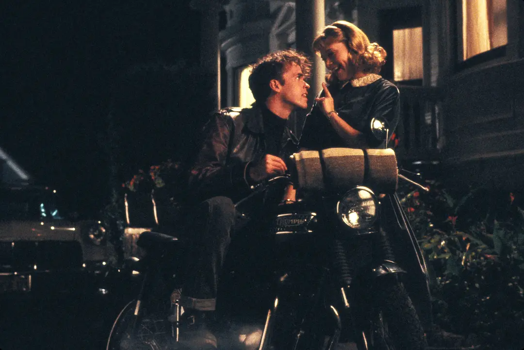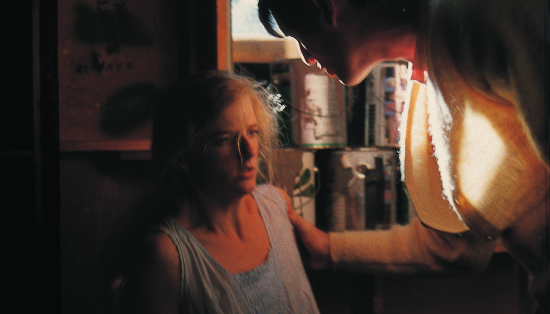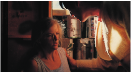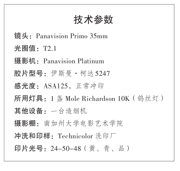 然而当演员们动起来时,光效发生了变化,整个场面变得生动起来。当男演员进一步走向女演员时,他黄色的毛衣就好比是一个移动的反光板,女演员的脸被毛衣映衬得非常漂亮。这节课所展示的是灯光的简洁性与运动性。通过利用演员的走位来调整画面中景物的亮度,克罗嫩韦思向我们强调了电影的灵动之美。除此之外,单一光源照明还为这个故事增加了张力,使该场景中二人的窗前对峙更具戏剧性。克罗嫩韦思表明,他的照明方式就是解决问题:“情况时刻在变,每个场景的问题各不相同,随着摄影师技术水平的提高,解决问题的方法会越来越多,你可以根据不同风格灵活选择。当你在选择镜头和其他器材的时候,你会自问‘我该怎么做才能得到理想的画面呢’,大多数的摄影师给出的答案是:跟着感觉走。”克罗嫩韦思把“感觉”建立在了解胶片的基础上。每部电影正式拍摄之前,克罗嫩韦思都会做很多胶片测试。他在访谈中说道:“我在很多不同的拍摄条件下试验,洗印时把这些试片调成统一的影调。通过判断光号的高低,评价试片是否曝光正确,最后得到一组通用的光号。但实拍的时候,第一天拍出来的样片用通用光号洗印出来后效果可能会不理想,那么就得再调,直到洗印光号固定下来,才可以尝试‘单光源照明’这种富有创造性的布光方式。毕竟,影响画面的可变因素太多了,每一个环节都有可能出差错。但也正是因为这种多变性,摄影师的工作才显得尤为重要。”约翰·托尔是第二位连续两届荣获奥斯卡最佳摄影奖的摄影师,在成为摄影指导之前,他在两部影片中为克罗嫩韦思做掌机员,《佩姬·休出嫁》就是其中的一部。“乔丹使用单一光源非常谨慎,我们一般不会只用一盏灯,但每场戏的照明都是从一盏灯开始构思的。在地下室的这场戏中,一开始,他只用一盏 10K灯是为了看大体效果。灯亮起来后,他发现一盏灯就够用了。这是一个看似容易的过程,其实,能够在某个时候意识到灯‘够用了’,是非常考验功力的。整场戏的强大之处在于简洁性,从构思起,到亮起第一盏灯,再到决定是否添加其他的光源……摄影师作判断的过程非常微妙。多亮起一盏灯,场景的气氛也许就全毁了,关键步骤在于判断优劣的边界。对此乔丹的判断力非常了得,他在作决定之前有时也会量量光,但那些读数对于他来说没那么重要,眼力和对摄影技艺的理解才是他的法宝。”