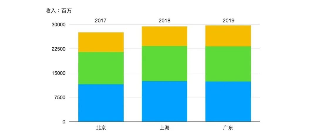 我找到了几组数据,分别是2017年、2018年、2019年广告行业的预计收入对比,该报告几乎涵盖了北上广地区所有的广告代理公司。虽然这么对比不太严谨,但也只是想给广告行业的同人了解一下。