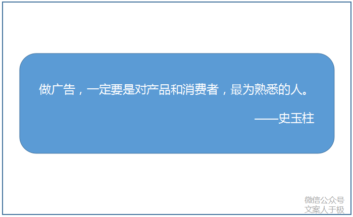 2、做广告,一定要是对产品和消费者,最为熟悉的人。