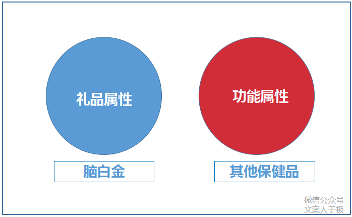 在脑白金之前,大部分的保健产品都是都是主打功能属性,把宣传重点放到了比如“降血压”、“补钙”、“补血”、“补脑”等功能上。