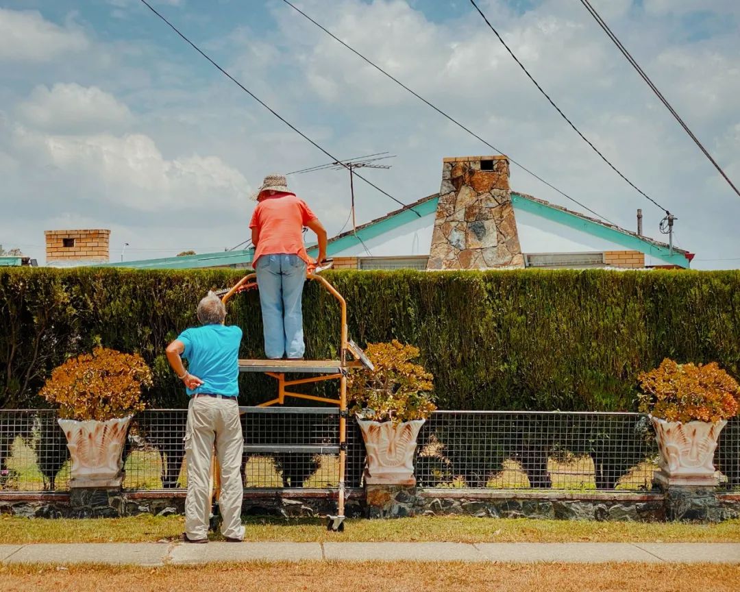 看似是寻常的工人刷墙场景,但却将油漆的色彩与自然完美融合,营造出大气、和谐的感觉。
