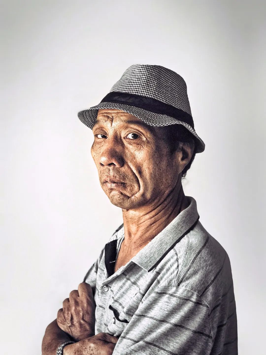 老人脸上的伤疤以及凝视镜头的眼神,仿佛是对战争无声的抗议。