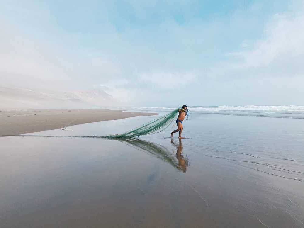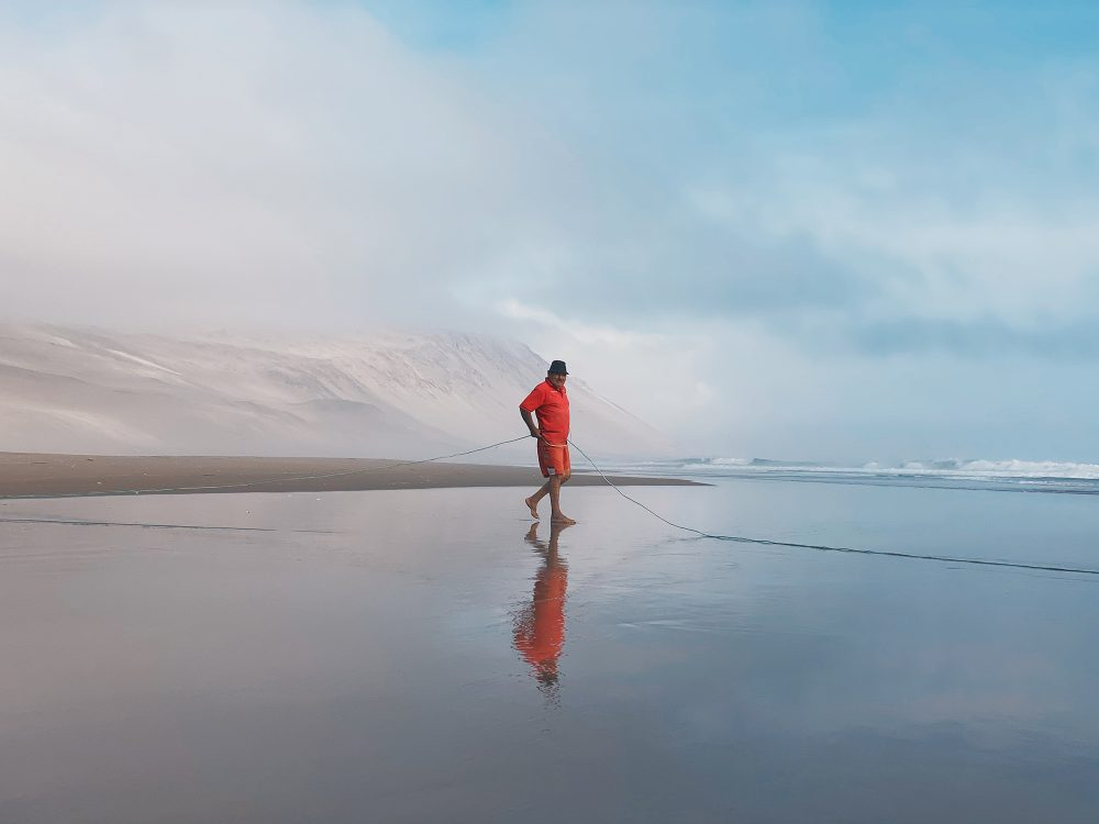 这组照片记录了无人海滩上当天的第一批捕鱼人。