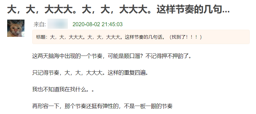 下面这个网友的问题,跟上题有异曲同工之妙,但因为失去了范围显得更为刁钻:大,大,大大大。大,大,大大大。这样节奏的几句话。