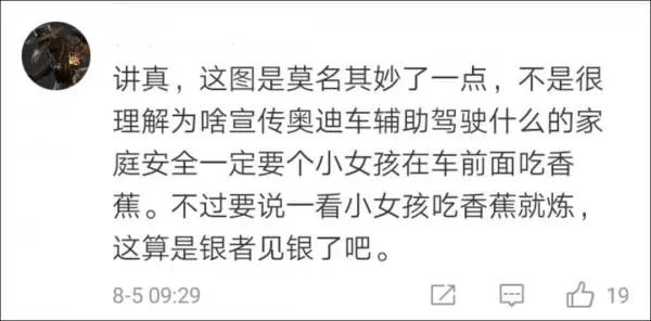 也有网友表示:虽然奥迪这张图配得有些莫名其妙,但是那些产生不好联想的人也有问题。