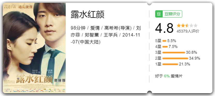 以导演高希希为例,在出道早期,高希希曾产出《搭错车》《幸福像花儿一样》等一批家喻户晓的作品,在电视剧领域享有盛名。但在转战电影领域后,高希希却屡战屡败,鲜有佳作问世,2014年由其执导的电影《露水红颜》豆瓣评分仅有4.8分,此后由其执导的《游戏规则》《八子》等电影同样反响不佳。而包括胡玫、赵宝刚等老牌导演在转战电影领域后同样表现乏力。