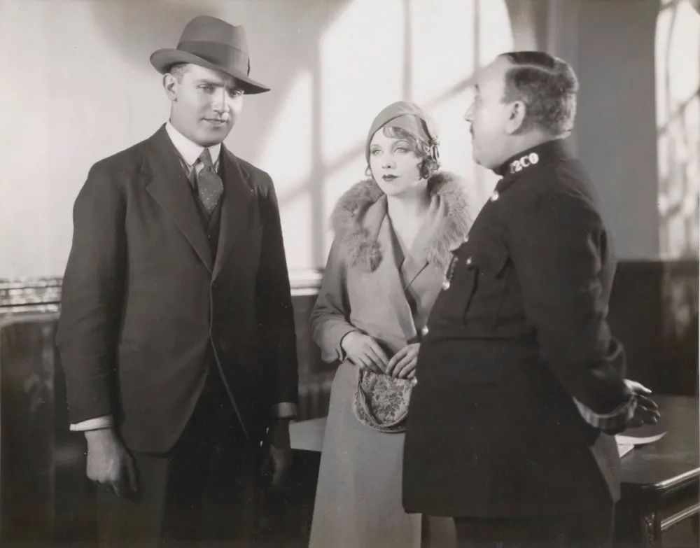 或者我想逐字逐句地复述一个著名的案件。比如,汤普森-比沃特斯案。电影可以重现整个故事。海上有发生火灾的可能性——这在银幕上从未被严肃对待过。对一些观众来说,它可能太可怕了,但它会使一个伟大的主题值得。英国制片人经常被要求制作更多关于英国人生活特征阶段的电影。他们问道,为什么我们很少见到英国农民或英国水手呢?还是英国的大工业——采矿业、造船业或钢铁业——没有足够的好材料?这里的一个困难是英国观众似乎对美国生活更感兴趣——我想是因为它有一种新奇的价值。他们很容易对自己国家的日常生活感到厌烦。但是我当然想拍一部关于德比的电影,只是它可能不太受欢迎。要编造一个不陈腐、不传统的德比故事是很困难的。我更愿意把它拍成纪录片——一种庆典,弗里斯德比日的现代动画版。我会展示球场上发生的一切,但没有故事。也许普通观众还没有准备好。大众口味会变;今天,你可以把几年前可能被排除的场景放在上面。特别是对于喜剧,现在有一种不同的态度。你可以从你的明星身上获得喜剧效果,而你过去不被允许做任何可能使他们失去魅力的事情。1926年,我拍摄了一部名为《下坡路》的电影,改编自艾弗·诺韦洛的一部戏剧,他本人也在这部电影中出演,与伊恩·亨特和伊莎贝尔·琼斯合作。有一个镜头显示了亨特和诺韦洛之间的争吵。一开始是一场普通的打斗,然后他们开始互相扔东西。他们试图拿起沉重的底座扔出去,底座把他们砸倒了。换而言之,我把它变成了喜剧。我甚至给亨特穿上了晨衣和条纹裤,因为我觉得一个男人穿着考究、拳脚相向的时候是最滑稽可笑的。这整个场面被剪掉了;他们说我是取笑艾弗·诺韦洛。这是前十年的时间。△伊恩·亨特,伊莎贝尔·琼斯和艾弗·诺韦洛在《下坡路》(1927年)我认为公众的口味正在转向喜欢喜剧和戏剧更加混杂;这是另一个偏离舞台常规的举动。在一出戏里,你们的分工要严格得多;你有一个场景拍摄这是一个关键;幕布后面可以休息。