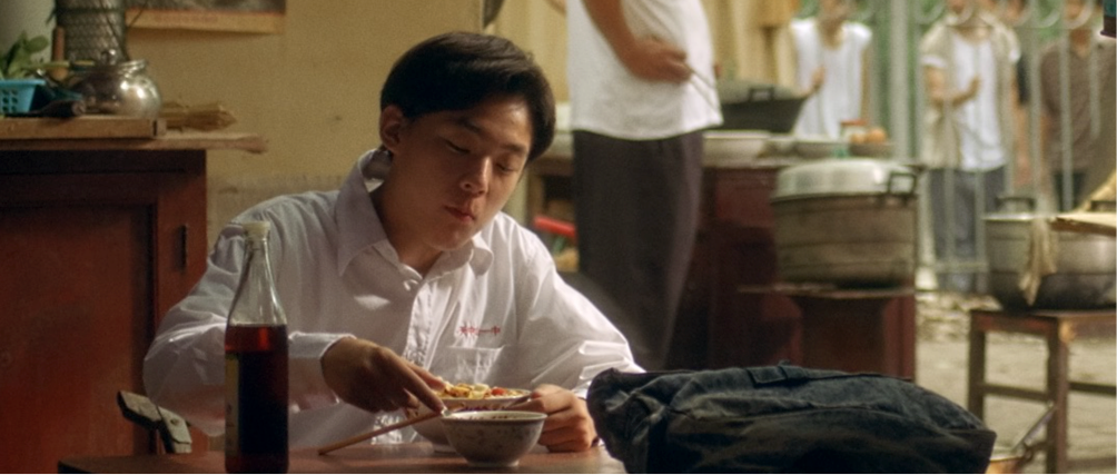 暖色是一种怀旧的颜色,这是很明显的特征。暖色里面如果还能分辨出一些红色,那就是更好的选择了,因为在过往的真实Timing中,因为工艺的关系,红色很难处理的很干净,特别是一些国产的电影。所以,我在高光中特意添加了一些红色,但是要注意的是控制它的面积,不要让整个画面变成红色,仅仅是参与色彩分配就好。上面这个画面的红色,我把它留在了白色文化衫的高光部分,到中间调的时候,基本就没有了。加之高光的硬度,我们不会觉得蒙着一层红色。(坦白讲,现在再看这个画面,有个问题就是后面岗亭的红色的明度应该再降低一些。)