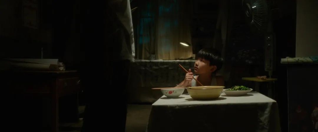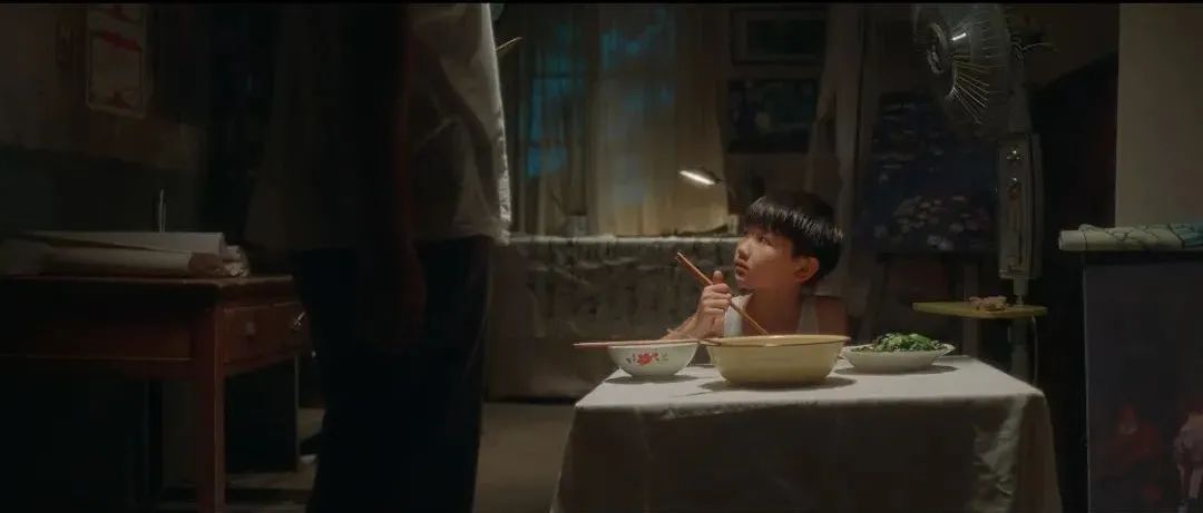 这个场面是一场非常温暖的父子戏,小孩子很单纯在等他的生日礼物。而家里并不那么富裕,母亲也不在家,整个家里又充斥着一种男人的粗糙。我需要在一个画面里表达两个感受,也就是两种质地。