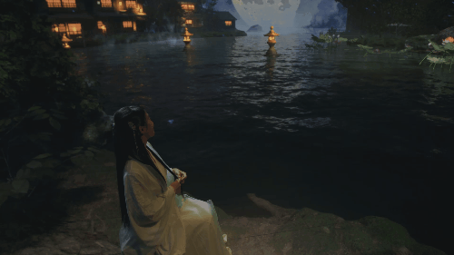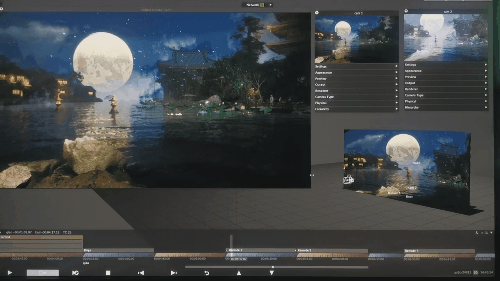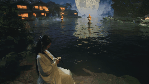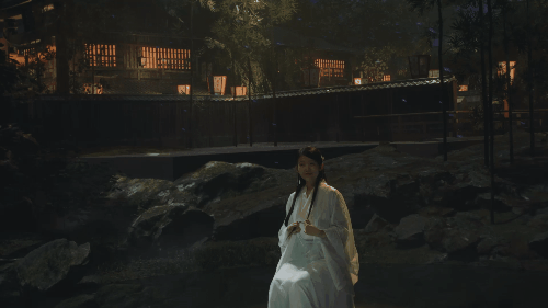 实验短片《遇》片中,在水边望月的一组镜头,随着演员的空间调度,虚拟灯光在 Grand MA 控台的调试下,完成了与虚拟引擎的气氛转化,以及人物面部氛围的营造。