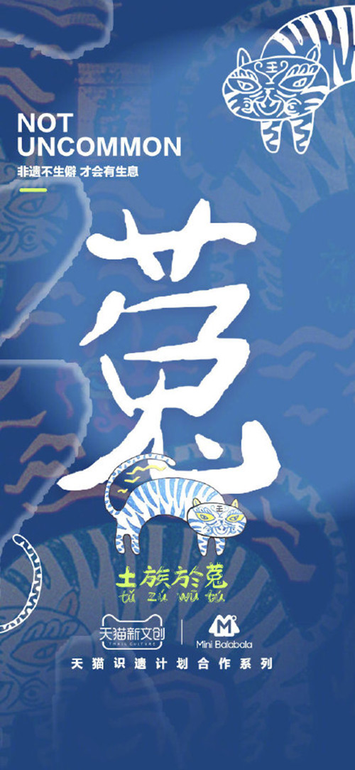 设计理念: Minibalabala邀请了小小艺术家王彦茜主导本次[土族於菟]非遗图案设计。结合传统的图腾文化,创作了两个憨态可掬的虎豹神兽,从小朋友的视角生动诠释了生僻字的内涵。通过对民族传统文化的二次创作,希望让更多的人认识并喜爱中国传统文化。