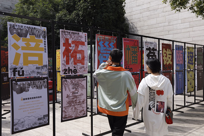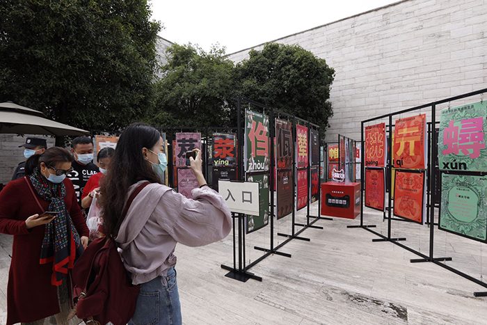 天猫新文创携手杭州良渚博物院举办100张生僻字非遗海报线下展,每一张海报都代表着一项非物质文化遗产。