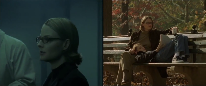 《消失的爱人》是各执一词叙事手法的卓越范例,让我们在谎言和欺骗的汪洋中困惑仿徨,人性的阴暗面是芬奇的电影必不可少的部分,有时黑暗的一面会获胜。美术设计和电影的观感息息相关,鲜少有电影能在画面上超越芬奇的影片,取景、服装、道具,有传言称他对细节的追求堪称偏执。举个例子,《搏击俱乐部》讲述的是一个对生活现状感到不满的男人,和来自一个打破一切截然不同的生活状态的诱惑,芬奇用布景完美体现了这两个截然不同的世界观,看着主角这毫无生气、千篇一律的屋子和他的办公室。接着主角遇到了泰勒·德顿,他痛苦的解药,泰勒早已逃出循规蹈矩的监牢,张开双臂迎接纯粹的个人自由。这无法无天的精神于泰勒在佩铂街上怕破旧废弃的房屋中有所体现,这个地方破败不堪,墙皮不断剥落,天花板漏水,再来水带锈,这距离主角以为自己想要的典型宜家生活差了十万八千里,一个迎接新生的完美地点。记住,角色是由环境塑造的,芬奇和他的艺术部门对此事事无巨细。大卫·芬奇并不喜欢在他的作品中加入太多颜色,场景的颜色被有意地调整为和服装相似的颜色,要么是绿的要么是蓝的要么是红的,但毫无疑问,芬奇最钟爱的颜色是黄色。他拍夜间内景时使用黄色光的案例有很多,事实上,芬奇的这个手法太过常用以至于当他真的使用了对比色时,效果拔群,这么做往往是有特殊含义的。来看看《消失的爱人》中这个场景,注意看这里的配色是怎么吸引我们的视线和注意力的,所有人都在盯着尼克,艾米的父母身着颜色和背景相似的棕色和中性色衣服。艾米的父母代表着统一战线致力于寻找他们的女儿,尼克的蓝色衬衣在人群中显得十分突兀,这使得他立马嫌疑上身。尼克从视觉上和立场上与艾米父母都是背离的,他孤身一人被视为首要嫌疑人。芬奇的许多叙事都通过镜头语言来展现,透过栅栏变换焦点来比喻片中角色的发现,他更愿意让角色在较宽的画幅中表演,只有在必要的时候才会切到近景和特写。芬奇不怎么喜欢移动镜头,但是一旦用上就一定是有目的的,这里的小小的平移镜头,这里一个非常轻微的俯仰镜头,这么做都是为了把观众带入角色,角色动,镜头才动,但他对镜头的掌控力远不止如此,芬奇是如何通过移动镜头的方式暗示角色的心理状态的呢。在《战栗空间》中,有这样两个镜头描绘了一种十分特别的心境,幽闭恐惧症。在稍早一些的场景中,梅格正在参观新房,当房产中介向他们展示避难室的时候,并且关上了房门,我们在此时了解到梅格对紧凑空间的恐惧,摄像机平移的同时焦距拉长,压缩了空间感,你似乎能感受到房间里的空气被抽走了一般。在影片结尾处有一个与其呼应的反转镜头,梅格和他的女儿在恐怖的入室抢劫中活了下来,他们远离了恐怖的避难室和那栋大别墅,此处运用了滑动变焦,摄像机向前移动的同时焦距拉广,人物在画面中的大小不变,但她们周边的世界逐渐展开,所有的紧张情绪和幽闭恐惧症于此平息,画面拥有了呼吸感。此处的效果非常微妙,但寓意深长。芬奇经常运用镜头的运动来将观众代入到角色的内心活动中,他的镜头运动要么十分微妙,要么和角色的行为幅度一样大。芬奇在剪辑时十分注重观众的视角,若电影中的角色注意到什么,我们作为观众也可以看到,当角色在脑海中有所联想时,我们也能通过其中有意的构图和剪辑跟上角色的思路。这里有个很好的例子,关于如何运用构图,调度和剪辑的组合构筑场景,亚瑟·李·艾伦是十二宫杀手的嫌疑人,当他被带到一个房间问话的时候,这场戏围绕着警探们对艾伦的怀疑展开,他是这场戏的焦点。这场戏以艾伦走过房间时所看到的一个主观镜头开场,当这位嫌疑犯坐下时,他们的位置经过了精心的设计,分别在这两处设置了相对的对戏位置,这场戏从各种不同的视角进行了剪辑,视角随着说话和倾听者的变换而变换。当艾伦翘起二郎腿时,影片切到一个低角度仰拍镜头,在这一帧里我们可以看到穆仑·尼克警官注意到了他穿的靴子,我们知道十二宫杀手穿的靴子是什么样的,所以当警官注意到靴子的时候,我们也跟着注意到了它。同样的,当塔斯基警官注意到艾伦的十二宫手表时,镜头切到近景,用以展现塔斯基的注意力被艾伦的手表所吸引,之后立即切到了一个看手表的主观镜头,我们又一次通过警官的眼睛看到这些事物。这种手法能激发我们的想象空间,我们变成了片中的警探。这里给出了几个镜头的快速剪辑,这几个镜头创造出强有力的逻辑控制力,能让观众保持高度的注意力,并推动情节发展。在这方面芬奇不会过度加工,除了必要的关门声和走路声之外,芬奇会精心把握需要特别的声效表现的时刻。《战栗空间》中这场戏是个很好的例子,梅格趁入侵者被分散注意力时冒险去拿电话,整个场景的气氛被抽象,延迟,低沉的音效推向了紧张的极点。《搏击俱乐部》中主角初见玛拉·辛格时,他的生活被这个不速之客扰乱了,当他试图听清互助团发言时,他听到一声响亮的咔哒声,当玛拉点燃打火机的时候,我们听到如同喷火器般夸张的音效,玛拉成了主角生活中的一个威胁,她是个入侵者,而我们能从音效设计中体会到这一点。或许芬奇表现力最强的声音设计是《消失的爱人》,当艾米和戴西大战的时候,开场是一段缓慢的脉冲音效,视听的结合就如同在模拟他的感受一