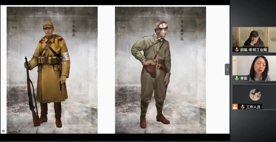 老师在介入整个造型设计工作之前观看了导演与摄影拍摄的样片,导演和摄影老师想要完成的是一个接近黑白的萧瑟质感的电影——“为了做好日军和国军在服装色彩中的区分,我和美术指导林木老师提出要在两方军队服装色彩上做出变动,在服装面料的选择方面做了许多尝试。”服装制作后需要移交给组员做旧,为了提供做旧的周期,老师在试面料的同时开始设计日军和国军的服装。