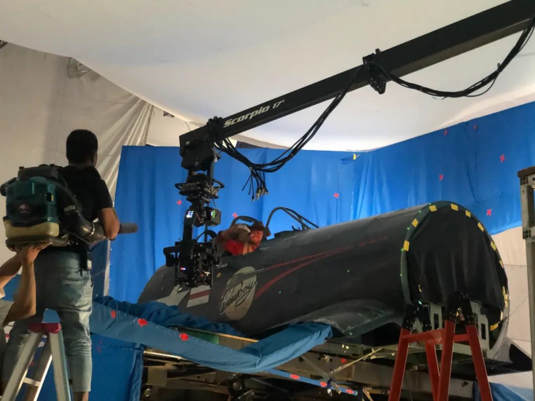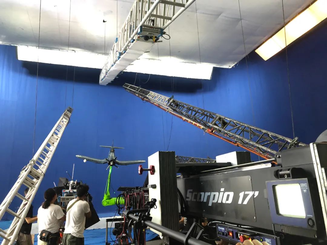 We also used BOLT. Our earliest design included putting an airplane model on the robotic arm, and then the airplane can perform various movements. A camera was mounted on the BOLT, via moving on a track we can capture the airplane’s different positions. The robotic arm and the camera move at the same time, and the data obtained from them are used as references for the special effects, because we were on a very tight schedule.BOLT with the aircraft modelHow are the positions of the electronic telescopic cranes allocated? Which memorable shots did you shoot with the electronic telescopic crane? How do you feel about the Scorpio 17’ electronic telescopic crane?