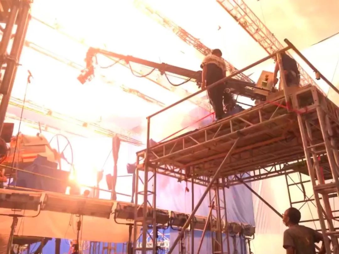 Liu: Scorpio 17’ is such a great electronic telescopic crane, of course, is used for the important cameras. We are not going to use such good equipment for putting up lights. We used many mechanical rocker arms, two of which are used to place lights, and the lighting crew pushes and pulls these rocker arms back and forth to create a moving effect of light and shadow. Cameras and lights needed to be coordinated closely, and their movement at any time is very particular. In addition, we must make sure we get the light angle we want without making goofs.