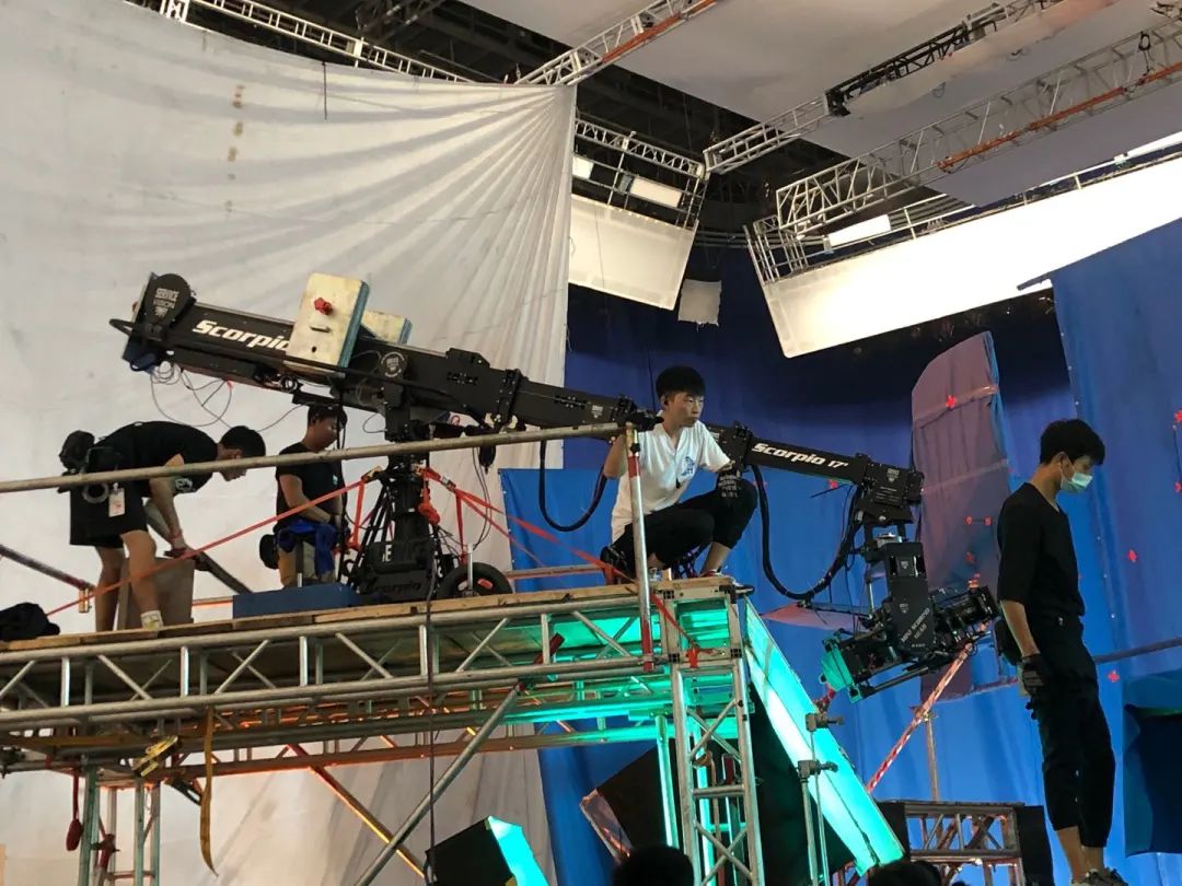 Xiao Li: We have up to 4 cranes on site a day, 2 electronic telescopic cranes, and two common ones for the lights. There wasn’t any real problem, expect the operation is more complicated. Everything was rehearsed many times. Every day we will arrive on site in advance to set the approximate camera positions, and Mr. Liu will determine the precise positions of the cameras and the lights. Electronic telescopic crane like the Scorpio 17’ is very nimble, which brings great convenience to our work, and made the production more efficient than before. Scorpio 17’ is very suitable for an environment of about 100 square meters, and you can also use it in slightly smaller environment. Compare to other cranes of the same size, I feel that the Scorpio 17’ is much faster to set up. We need to disassemble and assemble equipment frequently on site, sometimes several times a day. Compared with the old-fashioned mechanical rocker arm, the arm of Scorpio 17’ doesn’t need to be taken down, only to adjust the angle of the lower arm then you can move it.