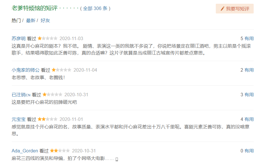 《老爹特烦恼》是一部主打父女情感的公路喜剧。一部学生作业级别的平庸之作,在网大市场上可能并不少见,但作为开心麻花的跨界首发未免草率。影片挂了开心麻花的招牌还套了“XX特烦恼”的句式,里面却没有相应的明星熟脸,许多人点进来深感上当,反弹格外猛烈。