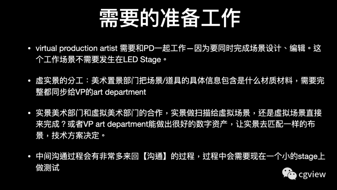筹备充分且必要条件 :预演需要数字资产,意味着美术在做场景的时候不管是视效组还是Virtual art department就要开始同步工作了。传统的线性流程被打破。
