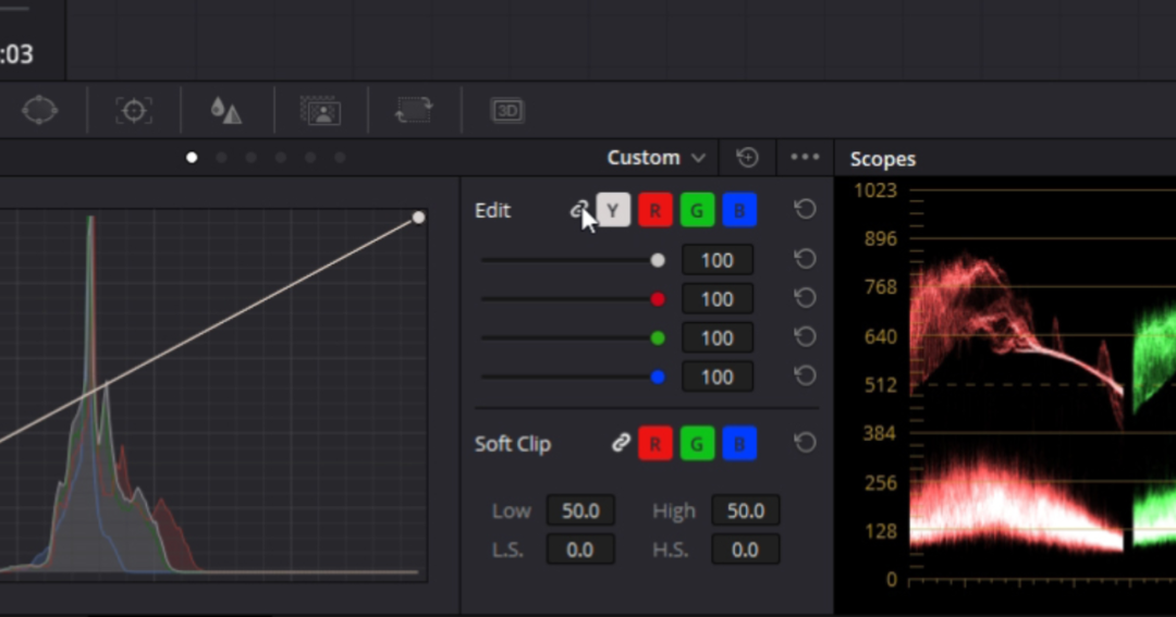 在达芬奇里,YRGB曲线全部出现在单个编辑器中。Y代表亮度,RGB代表红色,绿色和蓝色。RGB曲线使您可以对各个颜色通道进行色调调整。