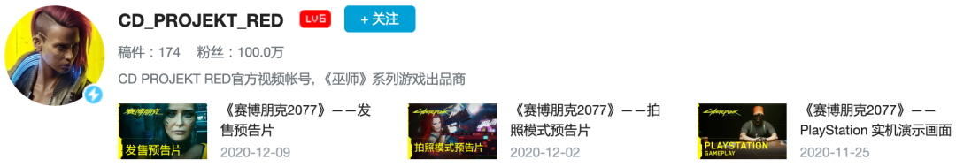 CDPR直接一步到位,自己在短视频出道当起了UP主。目前其在B站的粉丝数接近100万,上传内容除了精良的预告片还有自己的专属节目,叫《火线夜之城》。