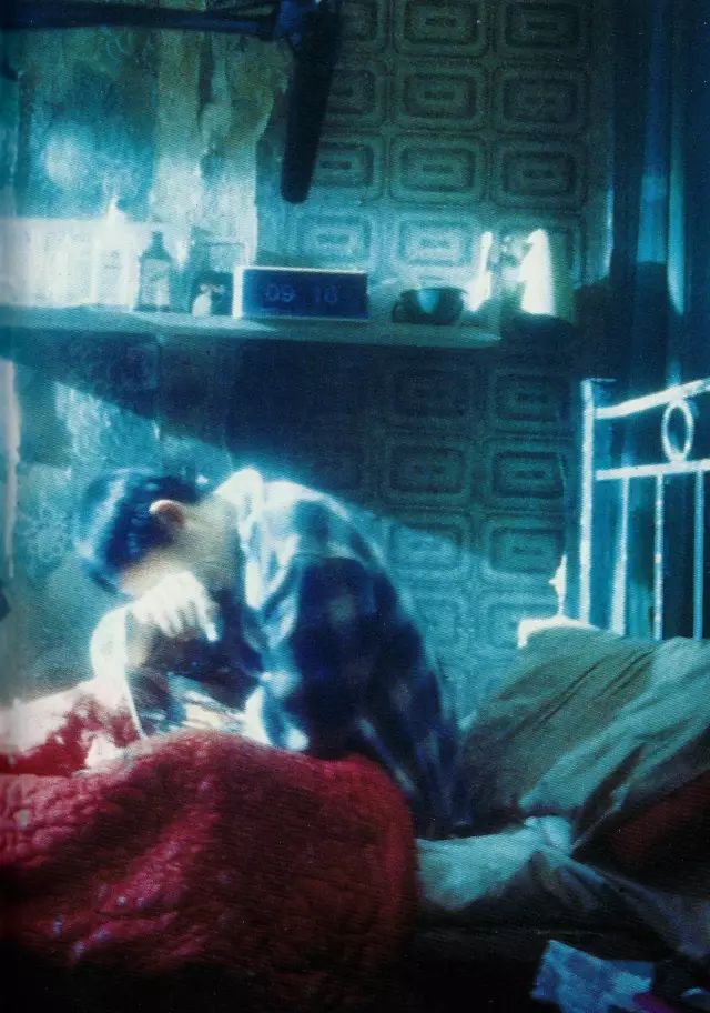 今天,当我去了洗手间时,摄影助理随意地把摄影机放在Tony床上,王家卫却在录像荧幕里看到了一个他很喜欢的角度。我们把床搞得更凌乱一些,以肮脏的恤衫和内衣裤半掩镜头;整个段落的风格就这样产生了。这「风格」像一面镜子,映照出Tony又一次被Leslie「抛弃」的感觉。出乎意料,这个角度视觉上很有趣,我们在这局促的空间进进出出三十多天,终于找到了解决的办法。「风格」其实是选择,不一定是概念。它应该自然而来,而不是生吞活剥。