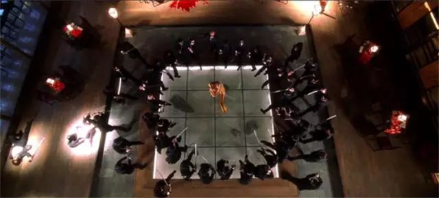 《杀死比尔1》昆汀·塔伦蒂诺和他的摄影师罗伯特·理查森,在这个镜头中使用了多个矩形框架和一个圆形框架,组成新的构图。