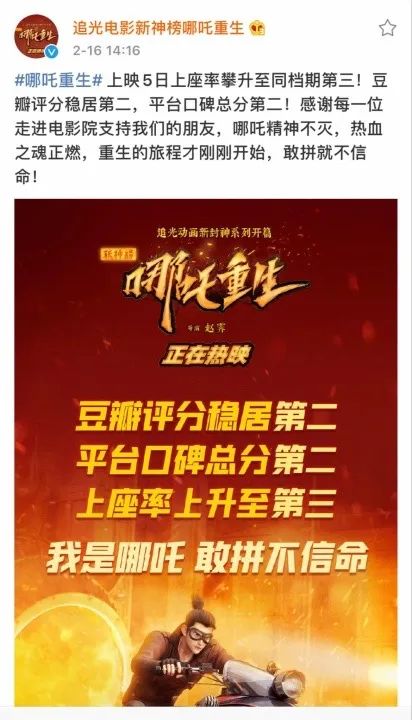 所以,国漫产业不会因为《哪吒之魔童降世》50亿的“光辉”就此彻底崛起,也不会因为《哪吒重生》目前仅有3.3亿票房的“遗憾”就此沉沦。追光动画从一开始就寄希望打造的“封神宇宙”,依然会在艰难前进。但国漫的“不认命”,需要引起更大的产业关注。