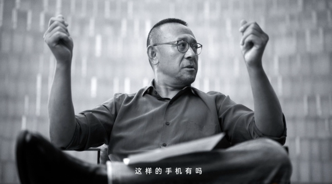 有趣的是,片中有个镜头是姜文坐在秋千上,像孩子般幻想着自己心中的理想手机。光是这个片子的黑白色调配上姜文颇有磁性的台词,就仿佛穿梭回到了姜文的电影片场。