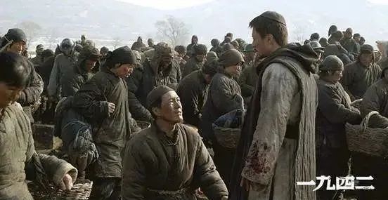 我再给你们说两个实际的例子,拍戏时候,为了进入角色,我们每个人都要减肥。我因为原本就瘦,减个五六斤后就看起来很瘦了。但是张国立和徐帆没我显瘦,他俩其实已经减了十多斤了,但没办法,每天还必须饿着。后来饿到什么程度呢,有一次开拍前,我旁边坐了一位工作人员,徐帆坐我旁边。大家因为都在减肥,全部饿得没精打采。后来开始拍摄了,旁边的工作人员刚一起身,徐帆一看,隔着我就爬了过来,我一瞧这怎么回事,结果发现,原来那人坐过的椅子上,有一个被压扁了的沙琪玛。徐帆当时饿得不行,都不管脏不脏了,捡起来就塞嘴里吃了。然后也是在现场,有次张国立站我旁边,我俩都在等开拍,我一回头抿了一下嘴。张国立马上问我“你吃什么呢?”我说我什么都没吃啊,他说“不对,我看你腮帮子在动呢!”其实我当时真的什么都没吃,只是抿了一下嘴,但人在饥饿的状态下就是会有这样的表现。《1942》里有一场我卖孩子的戏,我带着人贩子把孩子从窝棚里拿出来,然后要带走的时候,徐帆发现了就跑出来抢。拍这场戏的时候,徐帆特别有力量,结果当时小刚导演就说,你不能这么演,你饿了多长时间了,你有那么大力气吗,你最大的力气就是豁出命了把孩子拽过来扔窝棚里头睡觉。