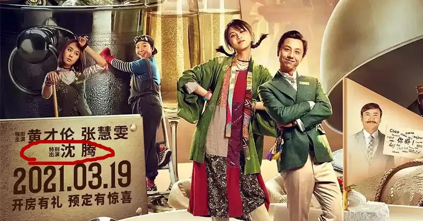 甚至两位男女主演捧着印有沈腾头像配上“来看”两个字,