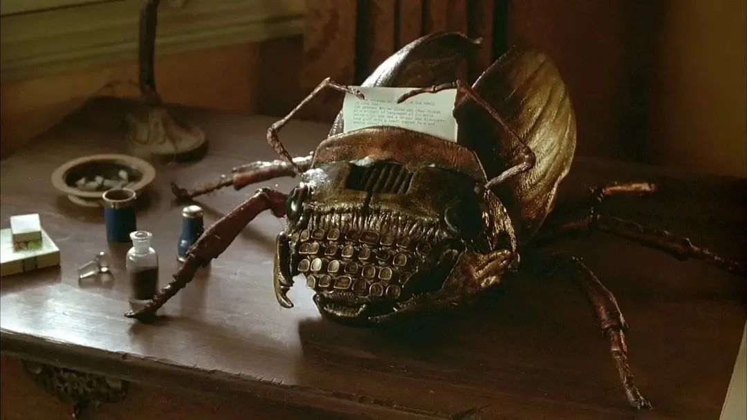而在《裸体午餐》中,柯南伯格的影片中提到了一个概念:“卡夫卡式的快感”。和巴勒斯,纳博科夫类似,卡夫卡是柯南伯格最爱的作家之一,在卡夫卡的作品之中,身体不再是固定的,坚实的肉身,而是异化,体变发生的场所。而至于柯南伯格,是肉体与机器的改造,缩合的迷恋构成了影片本身,在柯南伯格的影片之中,机器像肉体器官一样蠕动,滴血,《裸体午餐》中,打字机突然变成了一只巨虫,它令人想起卡夫卡的《变形记》开场:一天早上,格里高尔·萨姆沙在起床后发现自己变成了一只巨大的毒虫。而在《夺命游戏》中,是如同身体器官的游戏机器,以及骨头拼成的手枪。我们可以将此称之为一种血肉朋克的启示录,血肉朋克是赛博朋克的反面,身体没有被植入冰冷的机器,反而,在一尘不染的研究所中诞生的机器在成为身体,最终二者缩合为一个肿瘤,它是现代性的提喻。