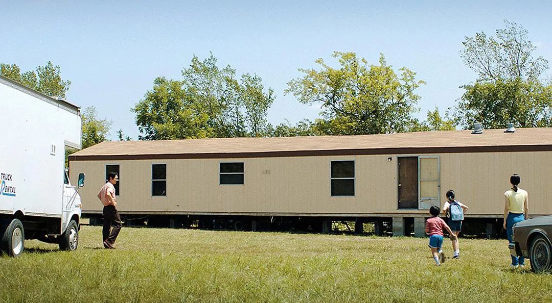 类似《浪迹天地》,《米纳里》之中同样出现了房车,但房车在影片之中,却最终意味着一个固定下来的家庭,取代了韩式房间,它似乎没有轮子,人物也最终陷在家庭观念之中,无法像《浪迹天地》的Fern一样脱离。